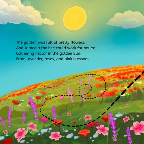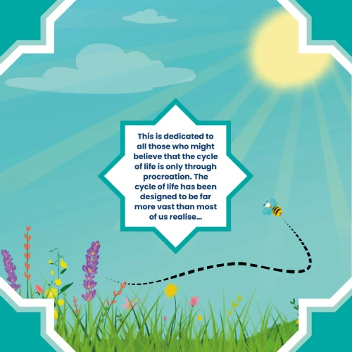 This is dedicated to all those who might believe that the cycle of life is only through procreation. The cycle of life has been designed to be far more vast than most of us realiseHow often do we get scared or annoyed by the buzz of a bee? We bat and shoo the bee away and think nothing of it and because they are so tiny, we think they are not really important. If they all buzzed away though, we would in fact sorely miss them.Jameela the Bee shows us through verse, how valuable the bee is and all the amazing things it does to help nature. Flowers and even humans rely on those busy buzzing bees to bring such great gifts to our lives and the world around us.Find out about Jameela and her busy buzzing life and learn more about why bees were created by Allah Almighty.